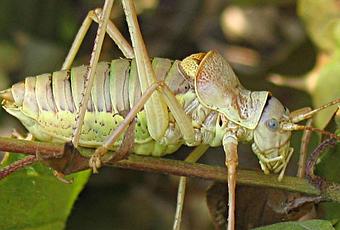 La chicharra de las viñas es un saltamontes de tamaño medio que se caracteriza por la ausencia de alas, es, por consiguiente, un insecto áptero, no apto para volar. La hembra se diferencia del macho por su largo oviscapto, en forma de cuchillo ligeramente curvo, que prolonga su abdomen.
