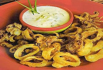 RECETA PARA 6 PERSONASIngredientes: 1 kilo de calamares – ½ taza de sillao -2 tazas de aceite vegetal – 2 tazas de harina sin preparar – 1 taza de mayonesa – 1 cebolla blanca – 1 huevo fresco – 1 huevo duro - 1 limón – 1 cucharadita de perejil – sal y pimienta al gusto. Preparación: Limpiar los calamares, luego cortarlos en aros de 1 cm de grueso aproximadamente, luego condimentarlos con el sillao, sal y pimienta al gusto, seguido mezclarlos con huevo batido. Luego enharinarlos y freírlos en aceite caliente. Es recomendarlo no moverlos hasta que estén dorados.
