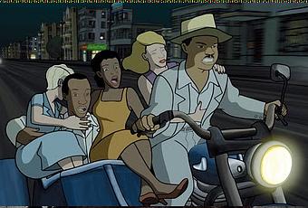 El dibujo de colores planos es sencillo, sin artificios, con líneas gruesas tanto en los contornos como en los detalles, demostrando la marca del trazo característico de Mariscal. Y la animación complementa el dibujo con unos realistas y minimalistas fondos (llenos de luminosos en la mayoría de las escenas nocturnas) realizados con degradados por ordenador, como puede observarse en la fotografía.
