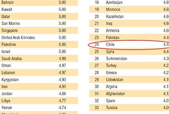 En la lista de 33 países con proyección de “estrés” hidrico para el 2040 ,solo hay uno de América Latina: Chile. Pero ademas “Chile, Estonia, Namibia y Botswana podrían enfrentar un aumento especialmente significativo del estrés hídrico para 2040. Chile, pasara del estrés hídrico medio en 2010 al estrés extremadamente alto en 2040 y es uno de los países con mayor probabilidad de enfrentar una disminución en el suministro de agua por los efectos combinados del aumento de las temperaturas en regiones críticas y el cambio en los patrones de precipitación”.[1]