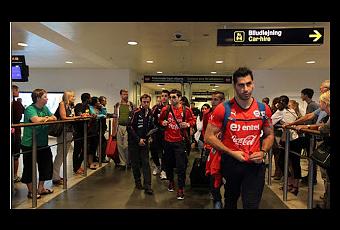 Pasadas las 22:00 horas arribaron el capitán de la selección, Claudio Bravo, y Mark González, Marcelo Díaz, Gary Medel y Alexis Sánchez.