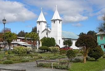 Bajamos en Chacao donde nos encontramos con la primera iglesia de madera ubicada en una hermosa plaza. Realmente es un lugar muy tranquilo. En todo el archipiélago hay unas 16 iglesias de madera que forman parte del Patrimonio de la Humanidad. Todas ellas fueron construídas sin clavos.
