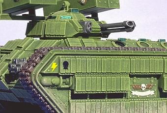 Hablando de este catálogo,estas variantes solo salieron en Epic40K como ya he dicho y fueron obra de Norman Swales,que por aquel entonces hacia el las figuras de casi toda la gama de Epic40K en cuanto tema de vehículos y elementos para figuras de 40K como las cuñetas de las armas pesadas(Como las de la G.I,por ejemplo).Como se puede ver en esta imagen,simplemente era el mismo tanque con algunos cambios en la torreta que en cada uno de los modelos era diferente por tener una combinación de armamento diferente o un añadido a la estándar.