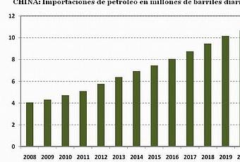 China se está convirtiendo en el mayor demandante de petróleo y su sed de consumo no da treguas. La demanda de China corre pareja a sus niveles de crecimiento, lo que la ha llevado a duplicar sus niveles de consumo cada 7 u 8 años. Esto le está creando una fuerte dependencia por el petróleo externo que plantea a los chinos un problema de seguridad. Debemos recordar que China es el quinto mayor productor de petróleo del mundo, y que sólo en 1993 comenzó a importar parte del petróleo que consume. Hasta ese año se abastecía en un 100%.