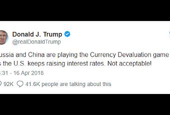 Desde que Trump asumió el cargo en enero de 2017, el dólar se ha debilitado considerablemente frente a la mayoría de las monedas, incluido el yuan chino y el rublo ruso, hasta que EE.UU. impuso sanciones a Rusia. En comparación con el yuan, el dólar ha perdido un 8,6% de su valor desde el 20 de enero de 2017. Antes del anuncio de las sanciones antirrusas, el dólar había perdido casi un 4%, aunque tras la caída del rublo el 9 y el 10 de abril, la divisa norteamericana se revalorizó en un 4,5%.
