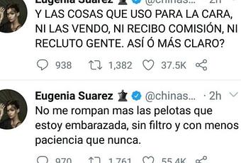 “No me rompan más las pelotas que estoy embarazada, sin filtro y con menos paciencia que nunca”, arrancó la China tras ver que la mediática volvió a pegarle. Y continuó, notablemente enojada: “Y las cosas que uso para la cara ni las vendo, ni recibo comisión, ni recluto gente. ¿Así o más claro?”, lanzó luego de que Cinthia publicara una serie de capturas donde se ve a la actriz realizando un tratamiento facial, no con una máquina, sino un elemento de acero inoxidable, con propiedades refrigerantes. En su posteo, si bien Suárez mostraba las bondades del tratamiento, quedaba claro que no vendía el producto.
