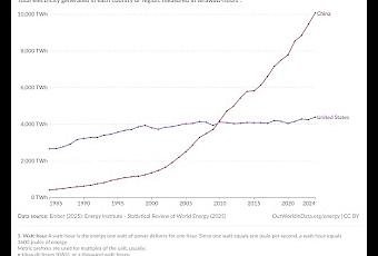 Hoy, el liderazgo estadounidense se ve nuevamente desafiado por un régimen autoritario. Y en términos de poder económico, China es un rival mucho más serio que la Unión Soviética. Algunos lectores se mostraron escépticos cuando señalé el lunes que la economía china es, en términos reales, ya considerablemente mayor que la nuestra. Lo cierto es que el PIB en paridad de poder adquisitivo es una medida muy útil, pero si parece demasiado técnico, ¿qué tal si nos fijamos en la generación de electricidad, que está fuertemente correlacionada con el desarrollo económico? Como muestra el gráfico que encabeza esta publicación, China genera actualmente más del doble de electricidad que nosotros.