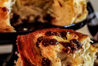 Pues que vi fotos de este brioche relleno de crema pastelera y pepitas de chocolate y no pude resistirme, lo preparé hace ya unos meses, pero con esta cabeza y las fechas especiales se me había ido poneros la recetilla por aquí. Está hecho entero en Thermomix, y es que me pareció que iba a salir de maravilla y así fue.