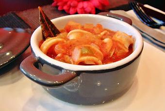 Calentamos el aceite en una olla y freímos los pimientos ya que tardan más en hacerse, después agregamos la cebolla, chalotas y ajo, dejamos que se poche para al rato agregar el tomate, el romero, albahaca y el laurel.Incorporamos unos 50 cl de agua tapamos la olla y dejamos cocer unos 15 minutos removiendo de vez en cuando para que no se pegue. Por ultimo agregamos los chipirones troceados salpimentamos y dejamos cocer otros 20 minutos. Servimos caliente, a comer antes de que se enfrie.
