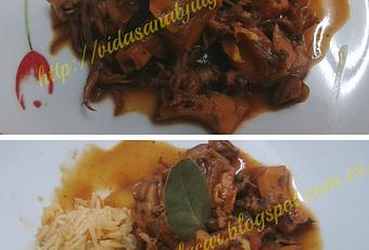 Hoy para comer unos chipirones con pota a la americana, para mojar pan y no parar jejeje, yo los hago en las ollas programables pero se pueden hacer en cazuela de barro en la vitro ó en cocina de gas Ingredientes: