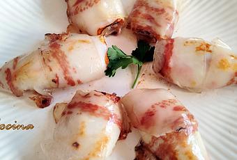 Sacarlos con cuidado de la sartén y envolver cada chipirón con las láminas de papada. Volverlos a colocar en la sartén, dando un calentón a fin de que se pegue la papada a los chipirones.