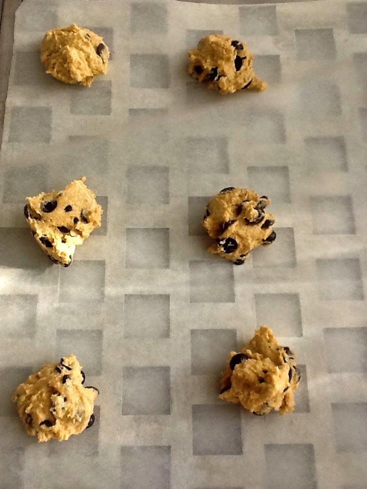 Con dos cucharitas, cogemos porciones de masa que dejaremos en pequeños montones sobre la bandeja cubierta con papel de hornear. Que estén bastantes separadas porque estas galletas crecen.