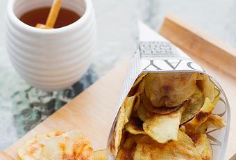 Ya os enseñamos cómo hacer las chips en nuestra anterior entrada de Express | Snacks de Patatas y Calabacín , pero también puedes usar cualquier paquete de patatas ya fritas siempre que sea al natural, mejor las clásicas que las onduladas.