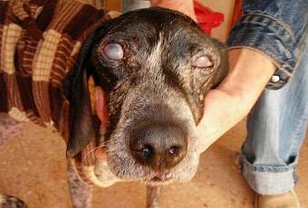 A esta pequeña la encontraron en una urbanización, alguien la dejo allí, al parecer enfermó de leishmania y no ha sido tratada , por eso tiene este aspecto, la enfermedad ha hecho que pierda la vista y su piel se encuentra en muy mal estado, tiene unos 4 años es muy dulce y tranquila,sus organos estan bien por eso queremos intentar salvarla, ahora esta en casa de acogida necesita adoptante definitivo, hemos empezado a administrarle glucantime y no tenemos suficiente, necesitamos más, por favor no pedimos dinero solo la medicacion para poder recuperar a nuestra Chiqui!!