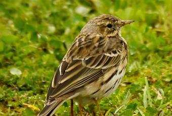 Hay varios bisbitas muy parecidos, y no es fácil distinguirlos. Este, el pratense, se va a los sitios de cría en los meses de marzo y abril, que es cuando llega a Gozón el otro bisbita frecuente, el arbóreo. Este último es un poco mayor y más oscuro, además se puede distinguir por varios rasgos del plumaje.