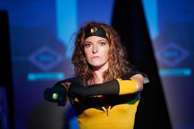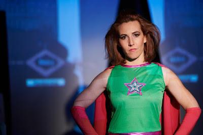 "Chispis" nos cuenta la historia de una heroína de barrio, Chispis Woman, junto con su súper aliada Star Girl, ambas en continua lucha con su archienemiga, Stablishment. Hasta aquí la premisa, aparentemente principal. Obviamente Galán nos cuenta otra cosa, pero desde un punto de vista francamente imaginativo, y enternecedor, en un texto que empieza como una comedia de humor absurdo, para ir derivando en el drama intimista, la denuncia social, y sobre todo el homenaje a una generación de mujeres de este país que vivieron la Guerra Civil, la Posguerra y el Franquismo más duro. Lucía Arozena, es el centro de la función, y en ella se va desgranando su vida, envuelta en tragedias cotidianas, errores irreparables, y actos de heroísmo, casi nunca reconocidos, y enormes en su pequeñez circunscrita al barrio de Carabanchel. La función tiene truco, no lo desvelaré, pero sin duda es acertadísimo, consiguiendo llevarme de la risa al lagrimeo en cuestión de varias escenas, y lo que en un principio parece no tener sentido va cuadrando de forma milimétrica a medida que avanza la función, eso si, con pequeñas pistas que Galán nos va dejando en un rastro de miguitas de pan, que nos hacen ver que algo no cuadra en lo que nos están contando. Simbologías soterradas que van tomando forma según avanza la historia, un humor a ratos descarnado, y situaciones estrambóticas se suceden mientras sin que nos vayamos dando cuenta se nos esté desgranando una gran tragedia, envuelta en papel de celofán, que a medida que vamos desenvolviendo el regalito, nos va congelando la carcajada que se va transformando en ternura a pasos agigantados, con sorprendente eficacia, y lo más importante, indudable interés teatral. Reconozco que estuve descolocado un buen rato del espectáculo, hasta que sin querer me fui metiendo en lo que se me estaba contando, para quedar completamente enganchado por la historia, y el acabado de la pieza. Cada escena tiene un por qué, y cada escena se va justificando a medida que avanza el texto con una lógica pasmosa, y tremendamente sorpresiva, en la que el giro final, dota a una historia, que en principio pasa por el humor más cañí y social, de un empaque considerable, y de tremenda vigencia en estos tiempos. "Chispis" es un enorme canto de amor filial envuelto en aires de farsa, con su punto de acidez justo para no quedarse en un almibarado melodrama, que deja un regusto agridulce en el espectador, que asiste a un ejercicio teatral con más enjundia de la que a priori promete, y de indudable dificultad para su terna protagonista.