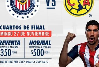 Chivas ha revelado cuánto costarán los boletos para el partido del vuelta de Cuartos de Final en el Estadio Chivas. La preventa para abonados tendrá lugar el 20 y 21 de noviembre en las taquillas del Estadio Chivas.