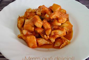 - Echamos las 10 cucharadas de tomate frito y el vasito de vino blanco, rectificamos la sal y dejamos cocer unos 10 minutos o hasta que se reduzca la salsa y ¡¡YA ESTÁ LISTO PARA COMER!!