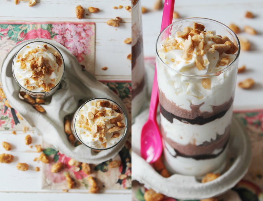 El chocolate liegeois es la combinación de helado de chocolate, crema chantillí y un sirope de chocolate. Pero para que quede más crujiente, y porque combina muy bien con el chocolate, le he añadido frutos secos garrapiñados troceados.
