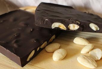 Me encanta el chocolate con almendras pero encontrar uno que me guste de verdad no es sencillo. Primero, porque prefiero el chocolate sin azúcares añadidos y segundo, porque lo prefiero bastante alto en cacao y con muchas almendras. Y ahí es cuando empieza la búsqueda, el que tiene pocas almendras, tiene un buen porcentaje de cacao pero claro, no tiene almendras; el que tiene muchas almendras, tiene un porcentaje de azúcar muy elevado… y al final nunca doy con el que me gusta de verdad. Así que harta de dar vueltas por el súper, he hecho mi propio chocolate negro con almendras sin azúcares añadidos.