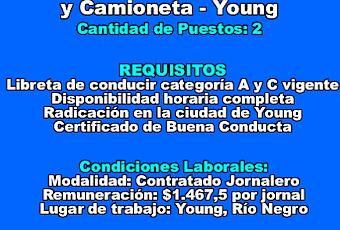 💼 Condiciones LaboralesModalidad: Contratado JornaleroRemuneración: $1.467,5 por jornalLugar de trabajo: Young, Río Negro