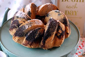 - Rellenamos el molde alternando masa con chocolate y masa sin chocolate y con un palito vamos haciendo remolinos.