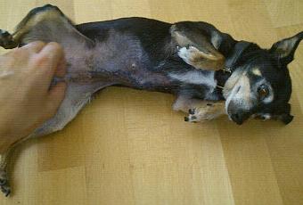 Choni es muy muy pequeña (2kg) y se porta genial. Su dueño la abandonó en la perrera, porque ya no le servía para criar, tenía un tumor de mamas más grande que ella, y al operarla no sabíamos si iba a salir adelante.