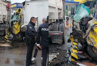 Los hechos se registraron cuando un camión cargado con azúcar colisionó contra un tráiler de quinta rueda que se encontraba vacío. La velocidad con la que se impactó el camión provoco que el accidente fuera muy aparatoso y quedaran restos de químicos y partes automotrices regadas por el camino.