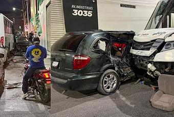 La noche del pasado domingo se registró un desigual choque en el que se vio involucrado un camión de transporte de personal UTEP, con número económico 13740, el cual chocó contra una camioneta con una familia a bordo.