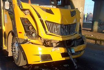 San Luis Potosí.- Esta mañana se reportó un accidente vial en el que se vieron involucrados dos camiones, uno de transporte de personal y otro de transporte público.