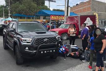 San Luis Potosí, SLP.- La tarde de lunes se registró un percance automovilístico en el que participaron una camioneta y una motocicleta, dejando como saldo dos personas lesionadas de consideración.