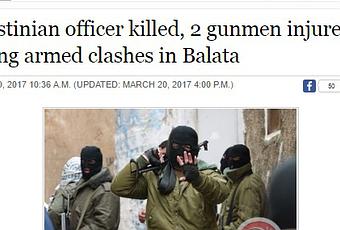 Un policía palestino murió la noche del domingo pasado durante los enfrentamientos armados que estallaron en el campo de refugiados de Balata, en el norte de Nablus, después de que fuerzas palestinas irrumpieron en el campamento para detener a fugitivos buscados por la justicia”.