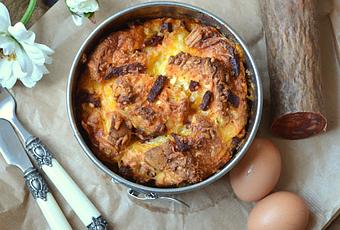 Ingredientes: 4 personaspan del día anterior (10 rebanadas de un dedo de grosor)Chorizo (cantidad a tu gusto)3 huevos L150 ml de leche1 sobre de mezcla de quesos ralladossal y pimienta