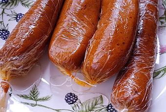 4.- Envolvemos la masa en papel flim y hacemos una ristra, apretando los extremos, sellamos las puntas con un cordel de cocina. Cocinamos los chorizos al vapor durante 1 hora. Dejamos que se enfríen y retiramos del papel flim.