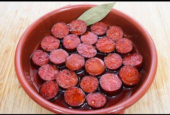 Por último echaremos las rodajas de chorizo en una cazuela de barro o, en el caso de que no tengáis, un plato hondo y los regaremos con la reducción de sidra que ha quedado en la sartén.