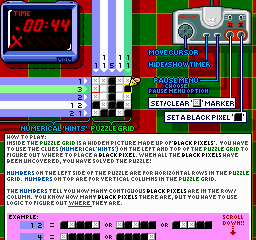 Chris: La parte del desarrollo fue realmente divertida, sobre todo crear los gráficos para el fondo y aplicar los típicos trucos de escalado y colores. Encontrar o diseñar los puzles fue algo más aburrido desde luego. Quería encontrar (o dibujar por mi mismo), iconos y gráficos reconocibles de los videojuegos más populares, pero la mayoría de ellos solo encajaban en una medida de 16x16. Así que encontrar muchos puzles de tamaños diferentes me tomó cierto tiempo.