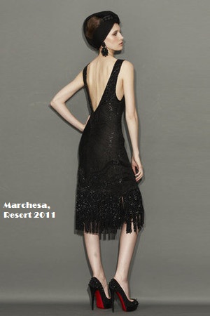 Christina Aguilera eligió un vestido negro bordado con palillettes, escote redondeado y flecos en el bajo, de Marchesa, Resort 2011, que combinó con unos zapatos de salón con plataforma de Yves Saint Laurent, modelo Tribute. No me gusta especialmente este modelo, aunque esté firmado por Marchesa, debe ser por mi aversión por los flecos, aunque a Christina no le sienta mal y le da un aire muy "burlesque".