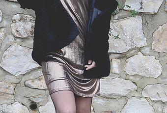 Ya sabéis que para el día a día me encantan los looks casual y sport, pero para la noche me gusta arriesgar y añadir algo de brillo. Y más si estamos en Navidad! hoy os propongo un slip dress con brillos bronce, abrigo de pelo, y tacones básicos con medias de rejilla. Para un toque sensual añadí debajo éste sujetador de encaje, que me tiene enamorada desde el año pasado. Un look económico y con un toque original. Espero que os guste el resultado!