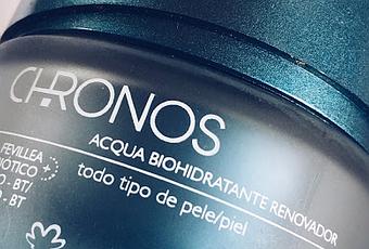 Esta crema de la línea Chronos, Acqua Biohidratante, tiene entre sus ingredientes un prebiótico llamado fevillea, proveniente de la biodiversidad brasilera que estimula la producción natural de ácido hialurónico. Es una crema que promete 72 horas de hidratación (aunque te laves la cara), que rellena algunos líneas de expresión.