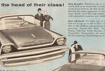 En este preciso caso los autos publicitados eran de las marcas Plymouth, De Soto y Dodge. Que a su vez eran ofrecidos al mercado por la división de exportación de la Chrysler, como consta en el pie de la vieja publicidad. Años donde todavía se usaba como mucha frecuencia las ilustraciones para vender autos.