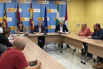 El presidente de la Confederación Hidrográfica del Segura (CHS), Mario Urrea, acompañado por la comisaria de aguas, Ana María Arenas, y el jefe de la oficina de planificación hidrológica, Jesús García, ha mantenido una reunión de trabajo con representantes de la Comunidad de Regantes (CR) de las Fuentes de Letur, acompañada de otras CCRR de la zona.