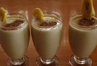 Como merienda y acompañado con un pan dulce resulta ideal dada sus cualidades proteínicas (potasio) y lo mejor de todo es que aprovechas esos maduros que ya tienen la piel negra y crees que debes tirarlos, ¡pues no!, se pueden aprovechar perfectamente y cuanto mas maduros estén mas rico sale el batido o el postre, según prefieras presentarlo.