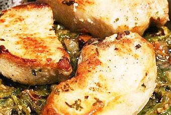 - Vertemos la preparación sobre las chuletas y cocinamos a fuego medio hasta que la mezcla tome textura y el sabor del vino se evapore.