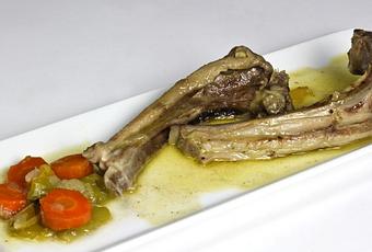 En el momento esté hecho el pimiento, añadimos las chuletas de cordero previamente salpimentadas y las zanahorias.