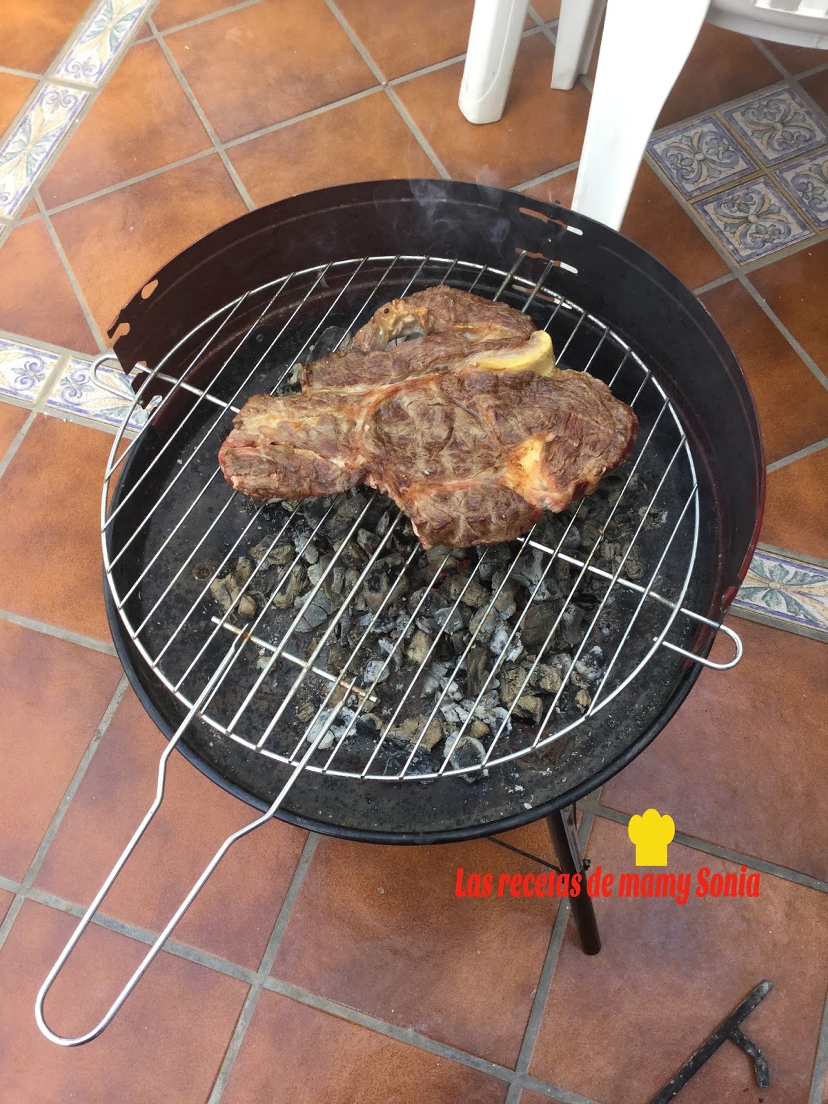 Mi hijo hace unas semanas le regalo al padre un chuletón de buey, ya que es uno de sus platos preferidos, y se puso manos a la obra y lo hizo sencillo pero no menos rico. INGREDIENTES _ Un chuletón de buey por persona _ Sal _ Manteca de cerdo _ Pimienta PREPARACIÓN En primer lugar salpimentamos y le ponemos trocitos de manteca Pasamos a la barbacoa y dejamos dorar por ambos lados Oleee mi cocinero Y llego el mejor momento a comerrr!!