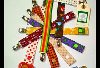 Están realizados con telas de algodón estampado... como de costumbre, todas muy coloridas! La pinza tiene un cierre muy fuerte con lo que es apta para tirones, jeje. Como la tira está cosida a la pinza, para lavar el chupetero hay que meterlo en pack a la lavadora. No hay problema porque el metal no se dañará ni perderá brillo... eso sí, mejor lo metéis en una bolsita de tela o lo envolvéis en un pañuelo cuando, ya que si no estará golpeando el tambor y armando un poco de escándalo.