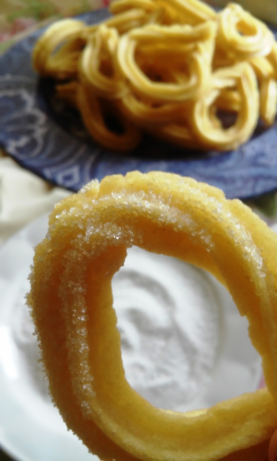 Tamiza la harina junto con la levadura y añade la sal. En el vaso de la Thermomix ponemos el agua, programando 10oº, velocidad 1, durante unos 3-4 minutos, agrega la mezcla de harina y programa velocidad 2, durante unos 25-30 segundos.Deja enfriar un poco e introduce en una churrera . Pon aceite de girasol a calentar en una sartén , mientras ve formando los churros en forma de lazo o como más te gusten y fría hasta que tomen color.Sirve rebozados en azúcar con un buen café o chocolate caliente.Puedes congelar sin problema de la siguiente forma: haces la masa y sobre una bandeja o plato forrados de papel de horno vas dando forma a los churros. Los envuelves en papel film y los metes en el congelador. Una vez congelados, los quitas de la bandeja y los guardas en una bolsa . El día que te apetecen sólo tienes que sacarlos un rato antes del congelador y freír, como si se trataran de unas croquetas.
