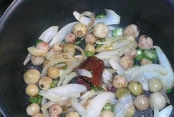 Fría la cebolla, los chiles rebanados, los arrayanes enteros y el piloncillo durante unos 10 minutos.