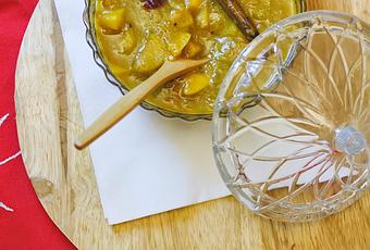 Chutney proviene del hindi chatni y significa aplastar. Se llama así porque normalmente hay que aplastar varios ingredientes durante la elaboración para acabar consiguiendo un condimento agridulce y picante (si se quiere). Se puede hacer con infinidad frutas, hortalizas y especias, en realidad con todas, pero el más conocido es el chutney de mango. Dependiendo de los ingredientes puede hacerse sin cocción, con una cocción mínima, como el de hoy, o con cocciones lentas de más de dos horas. Y como la calabacita siempre me echa la bronca que no pongo lo que se tarda ni lo difícil que es...hoy no podrá rechistarme.