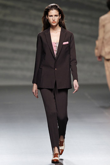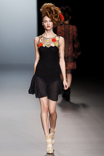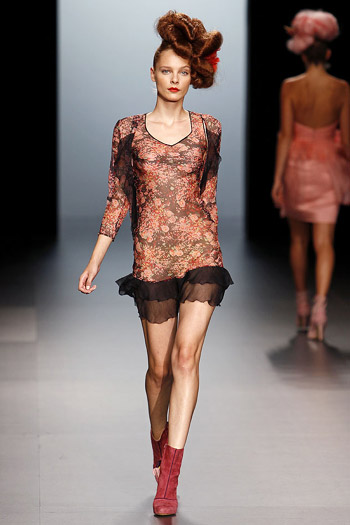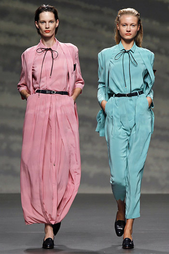Martín Lamothe presentó una colección más sobria. Trajes de chaqueta y camisas abotonadas hasta arriba contrastan con mini vestidos y faldas con camisas de motivos psicodélicos. Utiliza en algunos diseños un tejido "rígido", en otros napa perforada, en otros seda.. Zapatos de inspiración masculina.